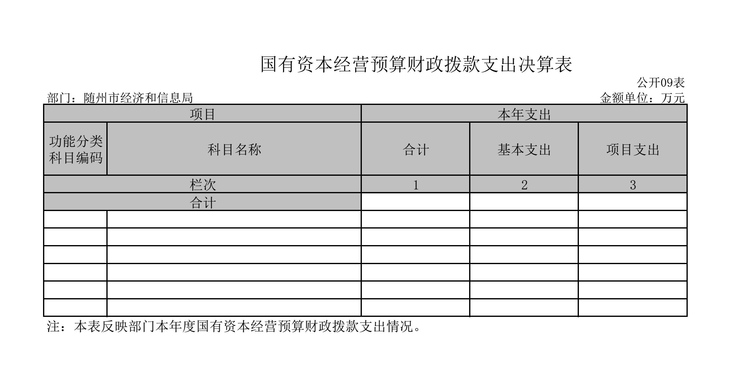 九、國有資本經營預算財政撥款收入支出決算表(公開表09表)
