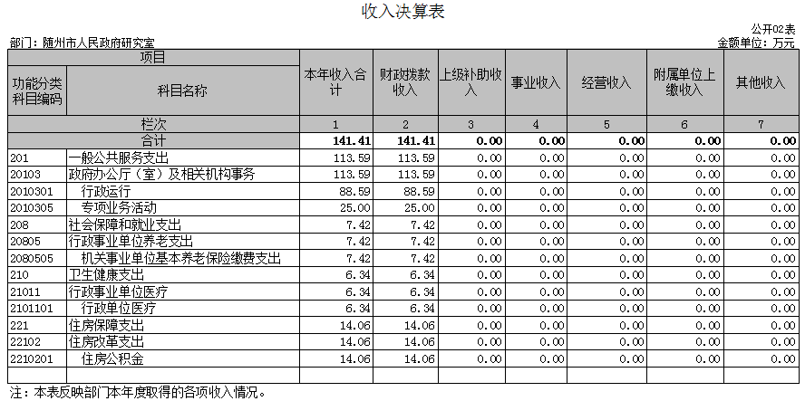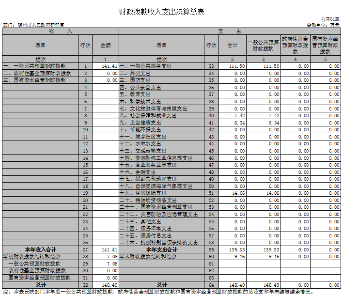 2020年度財政撥款收入148.49萬元,其中:本年財政撥款收入141.41萬元,年初財政撥款結轉和結余7.08萬元。