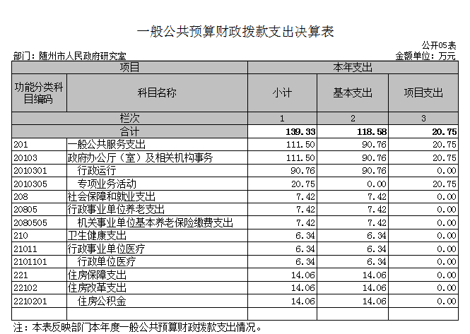 五、一般公共預算財政撥款支出決算表(公開表05表)