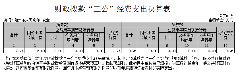 (七)“三公”經費:按照有關規定,“三公”經費包括因公出國(境)費、公務接待費、公務用車購置及運行費。