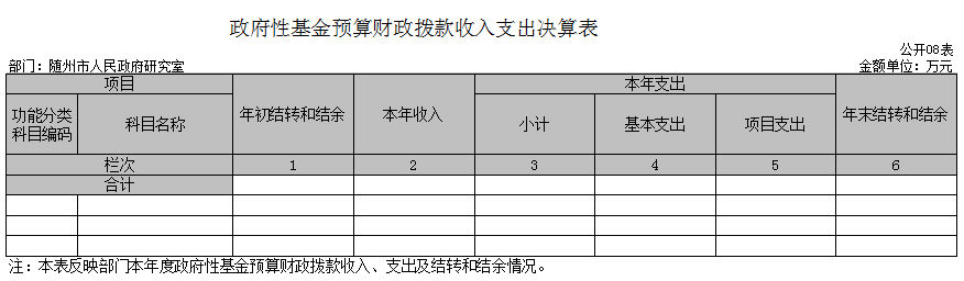 八、政府性基金預算財政撥款收入支出決算表(公開表08表)