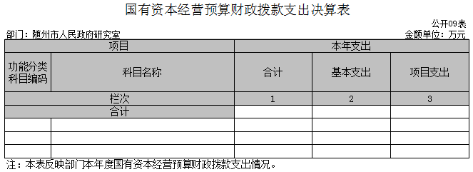 九、國有資本經營預算財政撥款收入支出決算表(公開表09表)