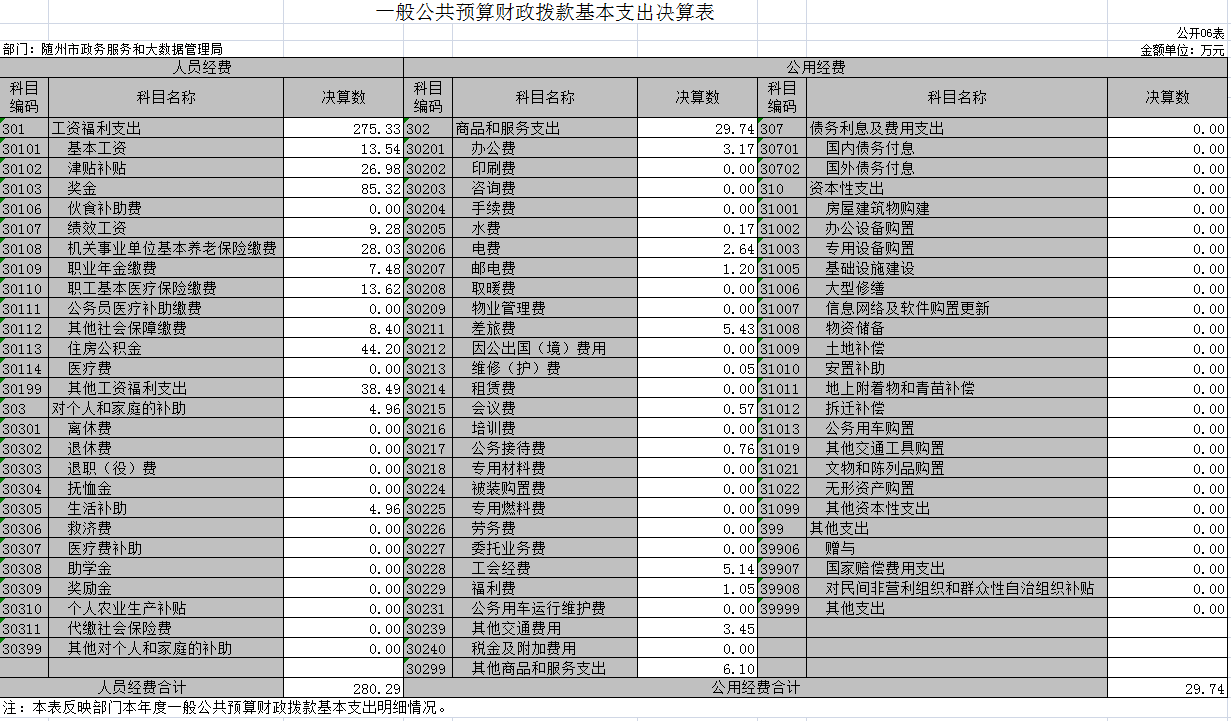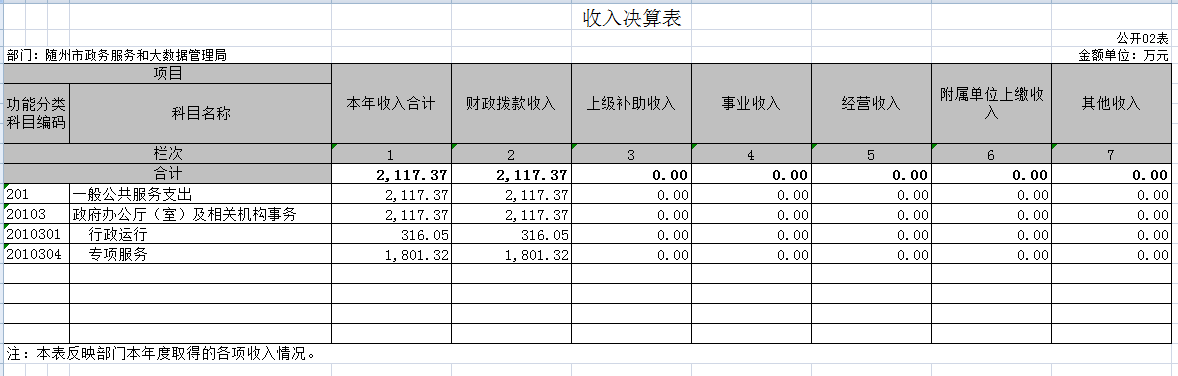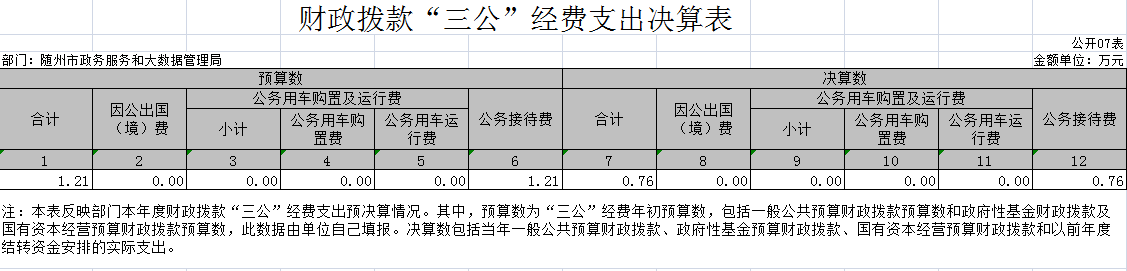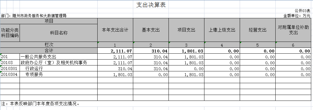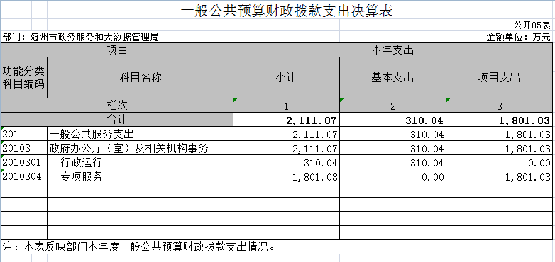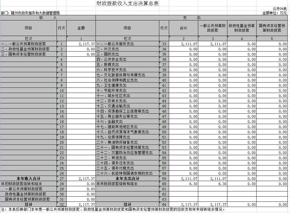隨州市政務服務和大數(shù)據(jù)管理局2020年決算表