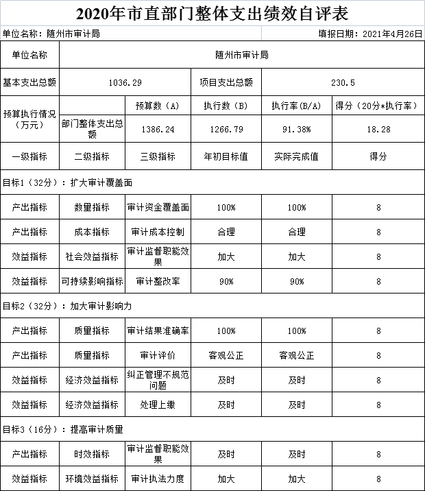 附件:2020年度隨州市審計(jì)局整體支出績(jī)效自評(píng)表