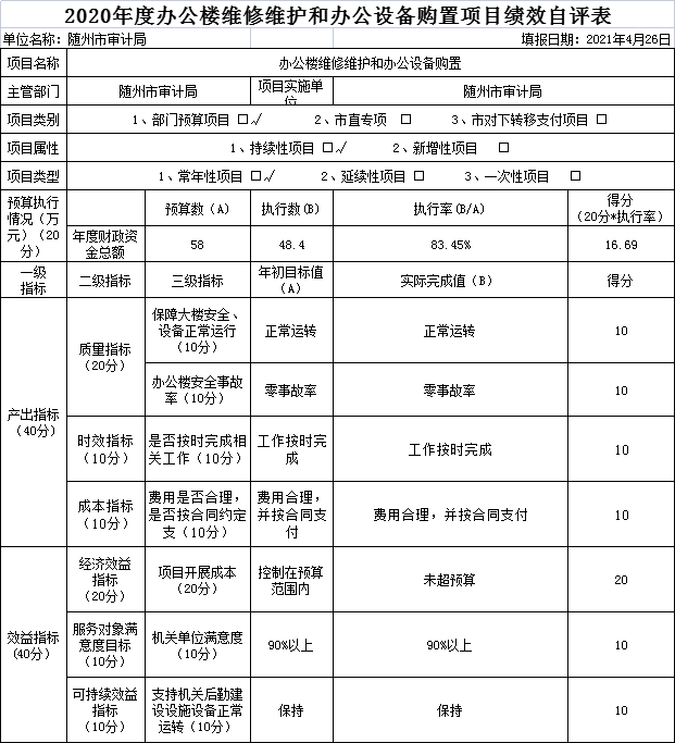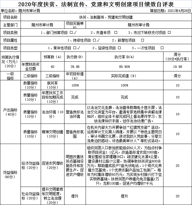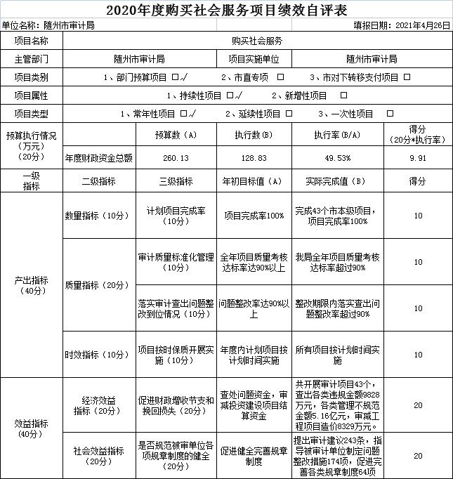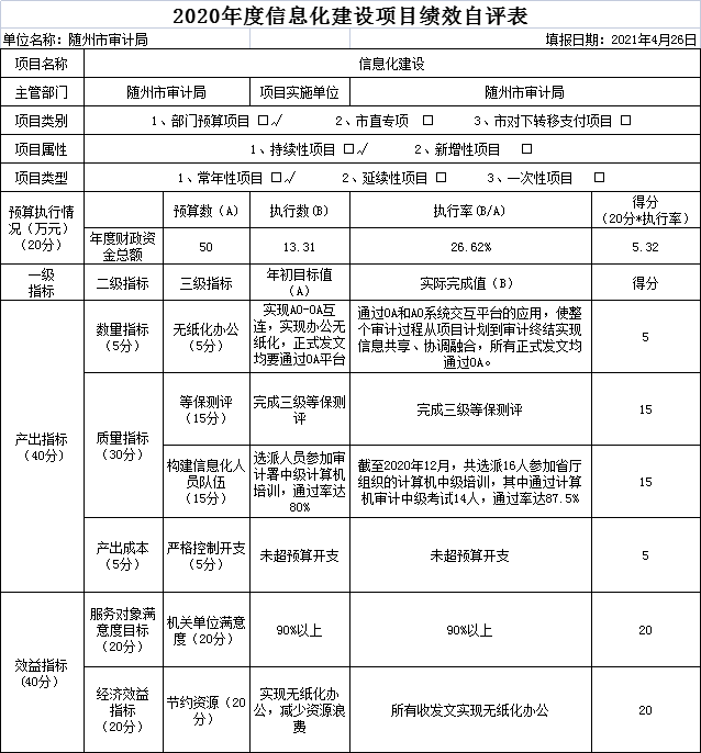 附件:2020年度隨州市審計(jì)局項(xiàng)目支出績(jī)效自評(píng)表