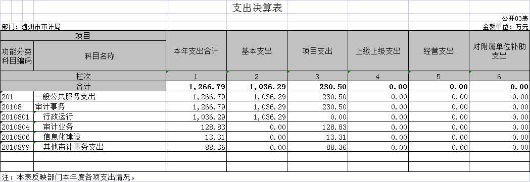 隨州市審計(jì)局2020年部門決算公開(kāi)
