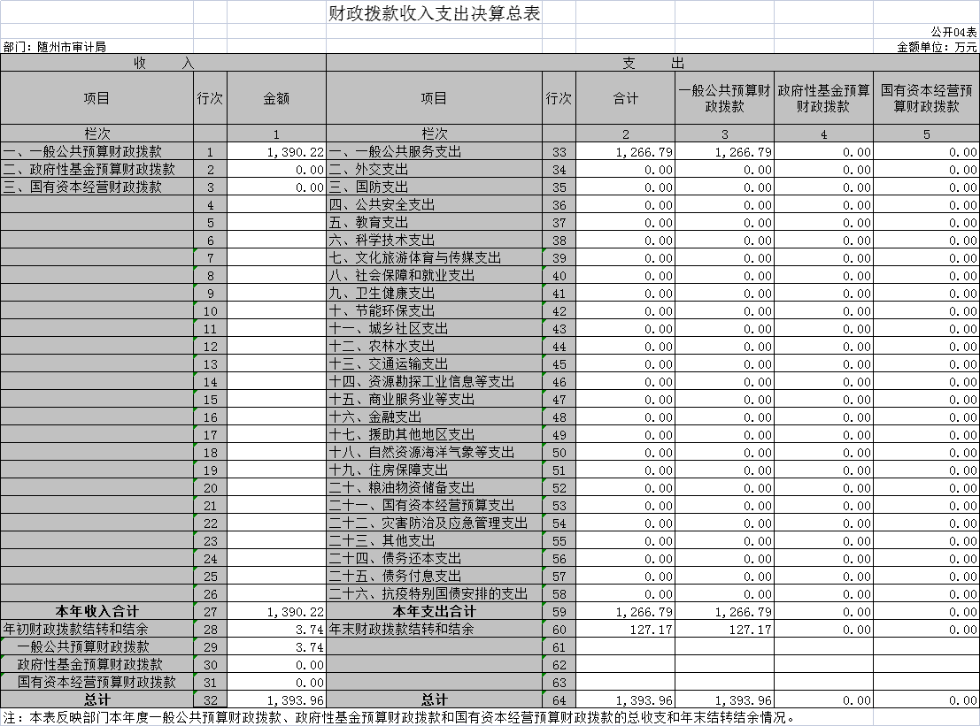 四、財(cái)政撥款收入支出決算總表(公開(kāi)表04表)