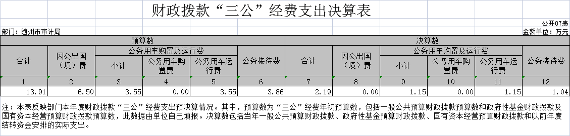 七、財(cái)政撥款“三公”經(jīng)費(fèi)支出決算表(公開(kāi)表07表)