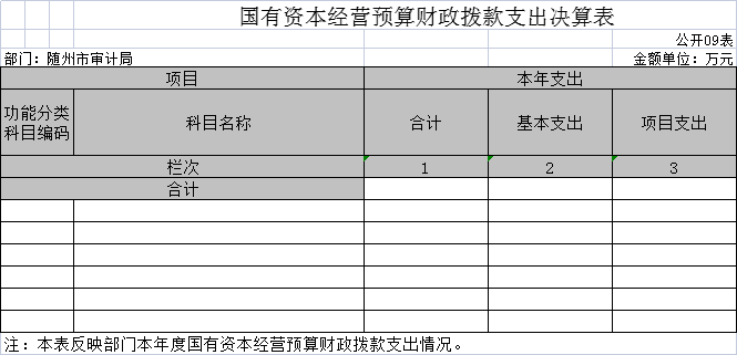 九、國(guó)有資本經(jīng)營(yíng)預(yù)算財(cái)政撥款收入支出決算表(公開(kāi)表09表)