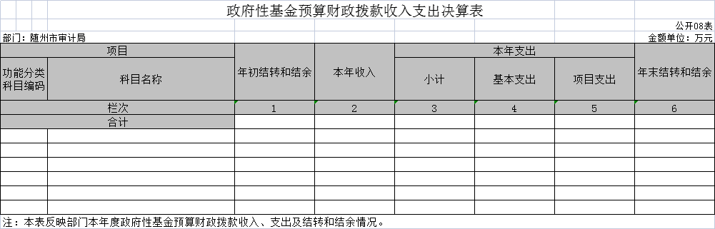 八、政府性基金預(yù)算財(cái)政撥款收入支出決算表(公開(kāi)表08表)
