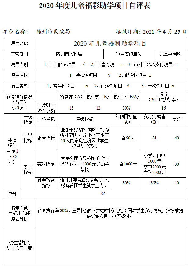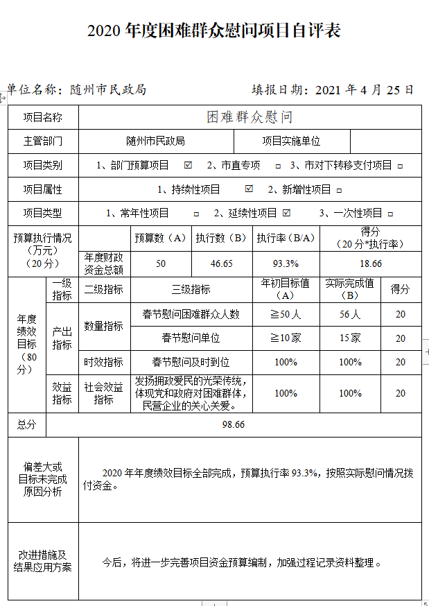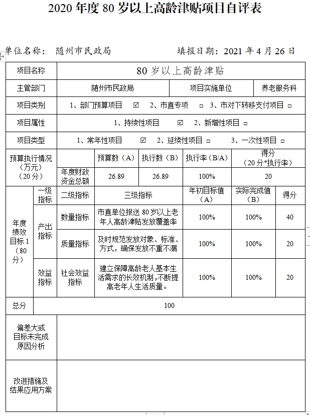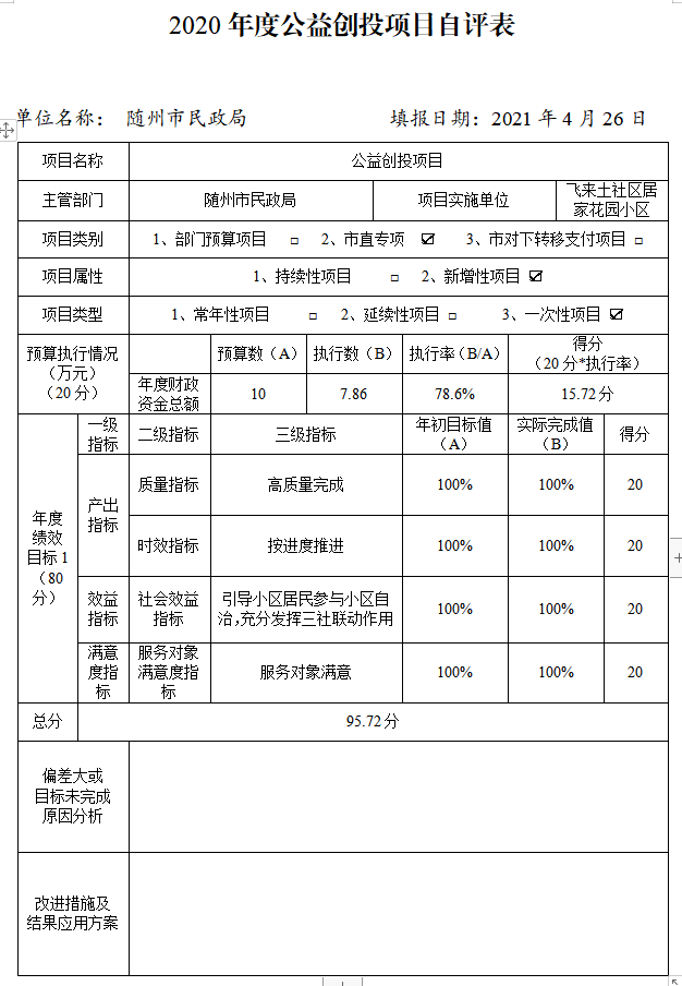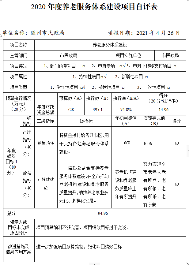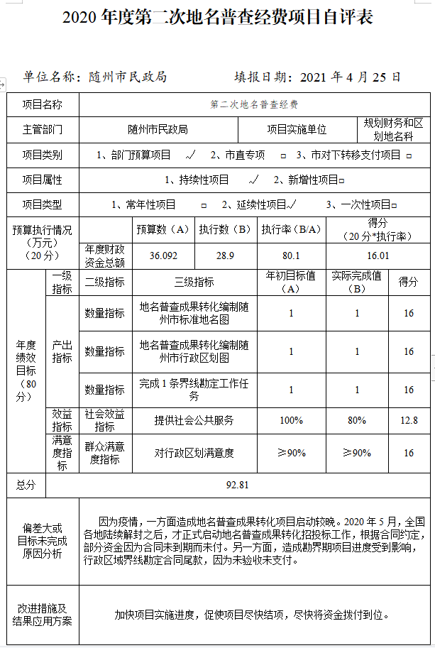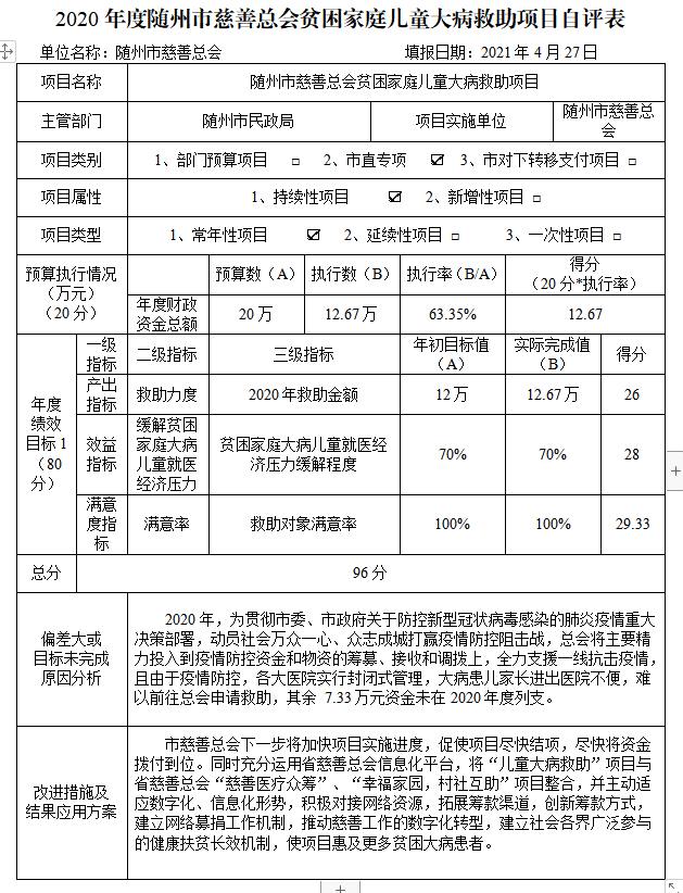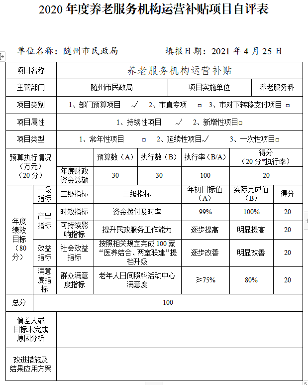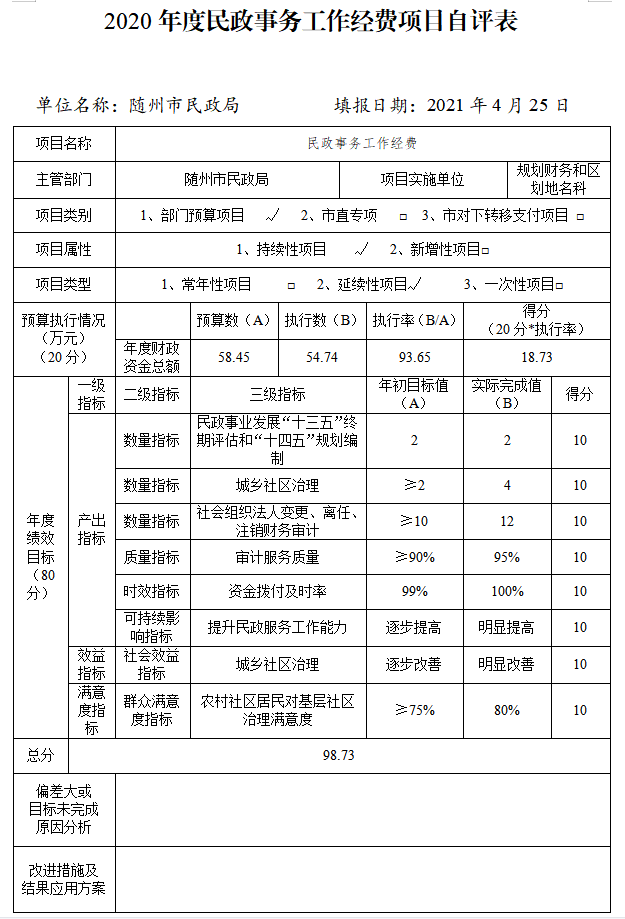 附件:2020年度隨州市民政局項目自評表