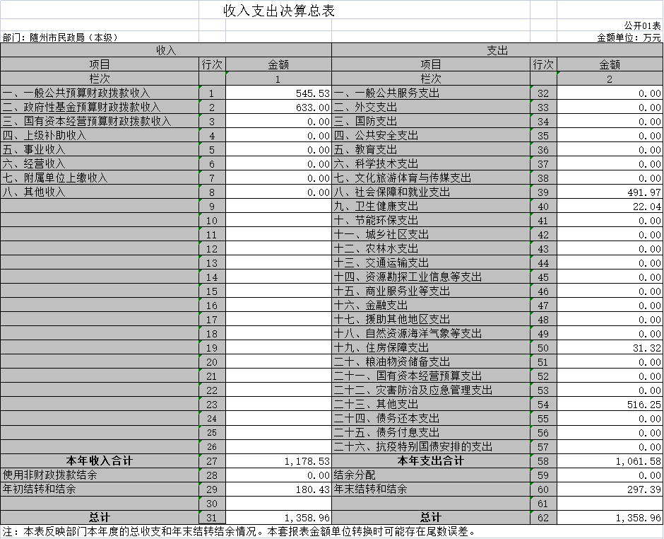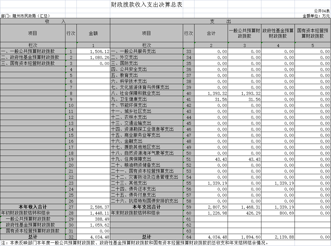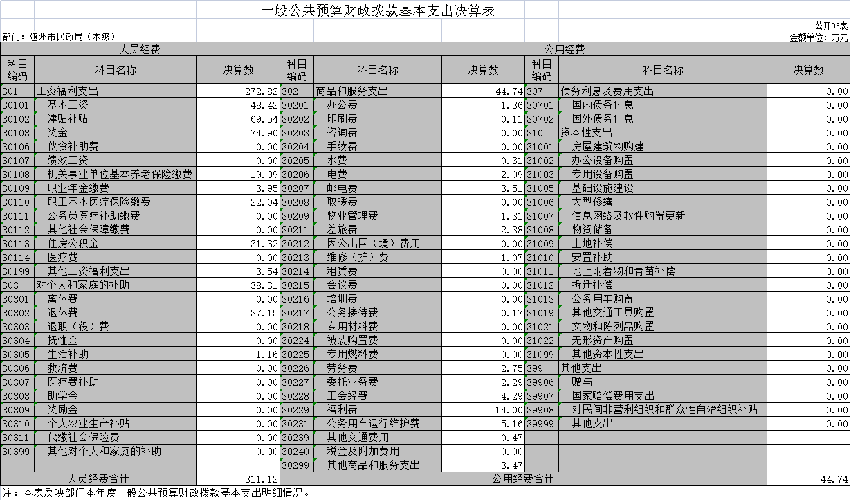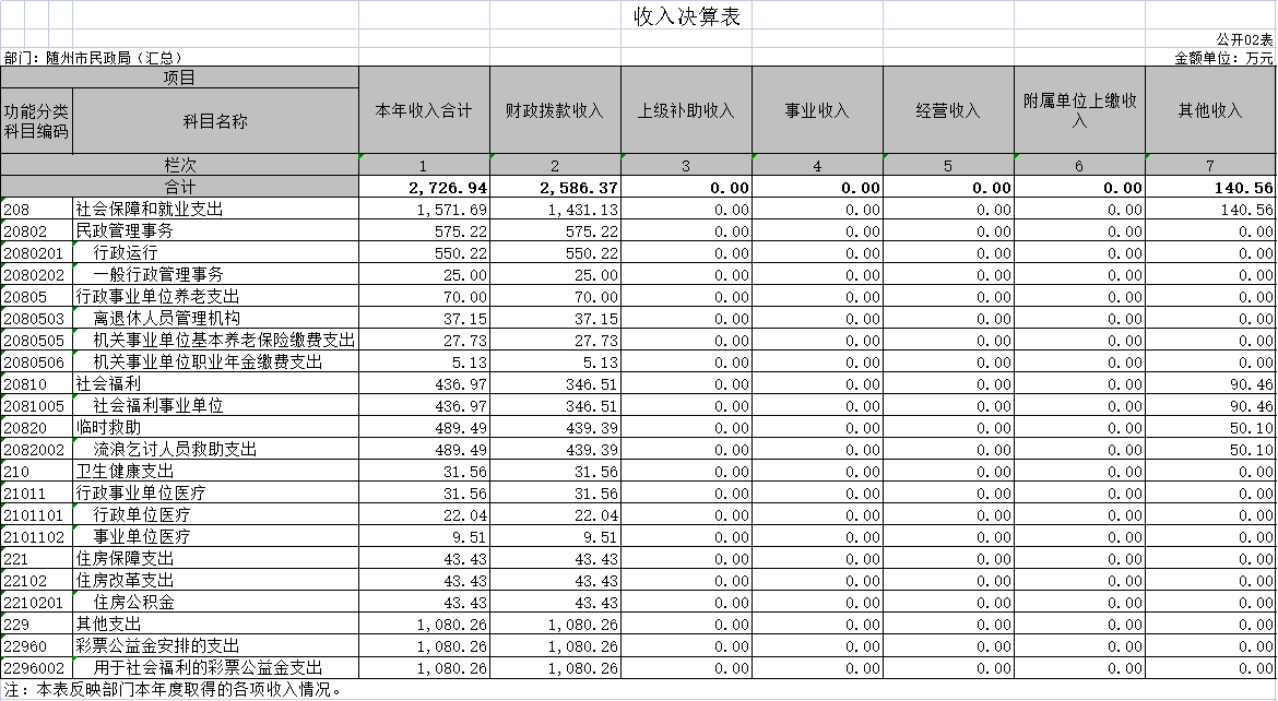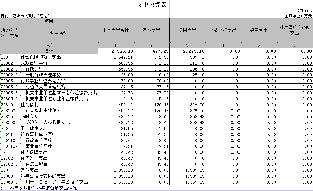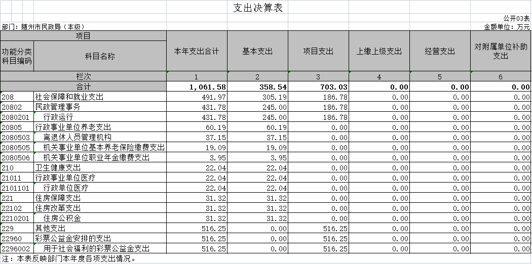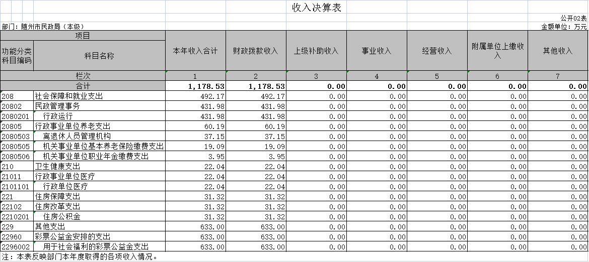 第三部分 隨州市民政局2020年部門決算表??