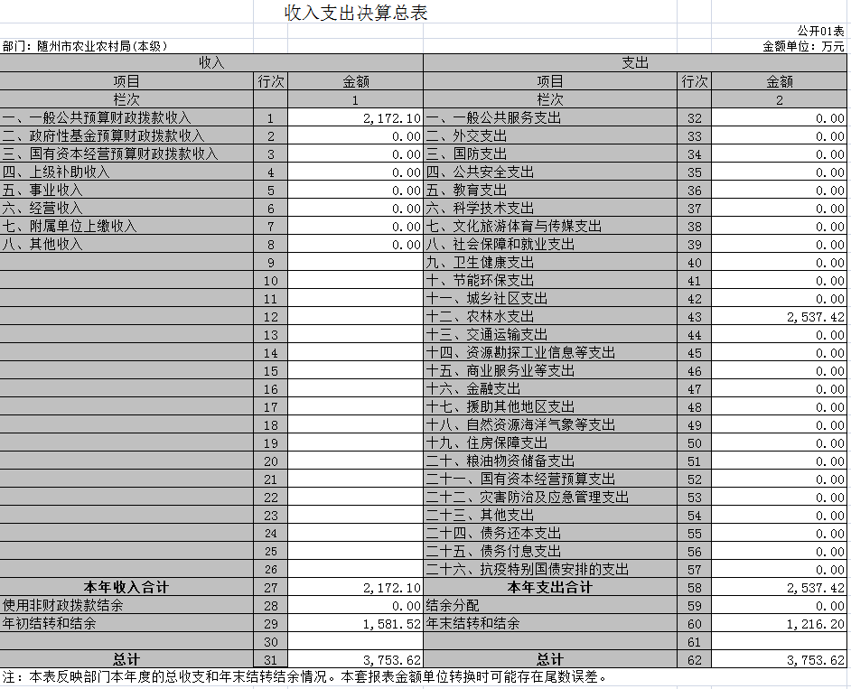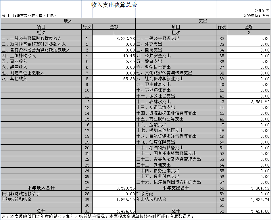 隨州市農業農村局(匯總)2020年無國有資本經營預算財政撥款收入和支出,故國有資本經營預算財政撥款支出決算表(公開09表)無數據。