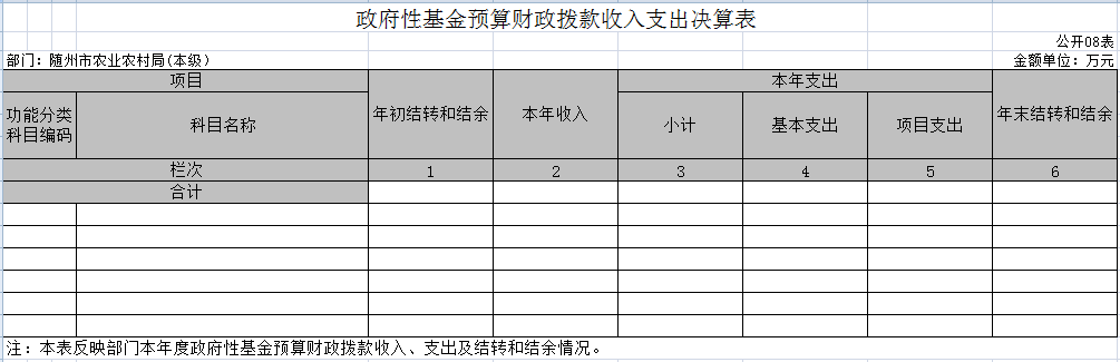 隨州市農業農村局(本級)2020年無政府性基金預算和支出。