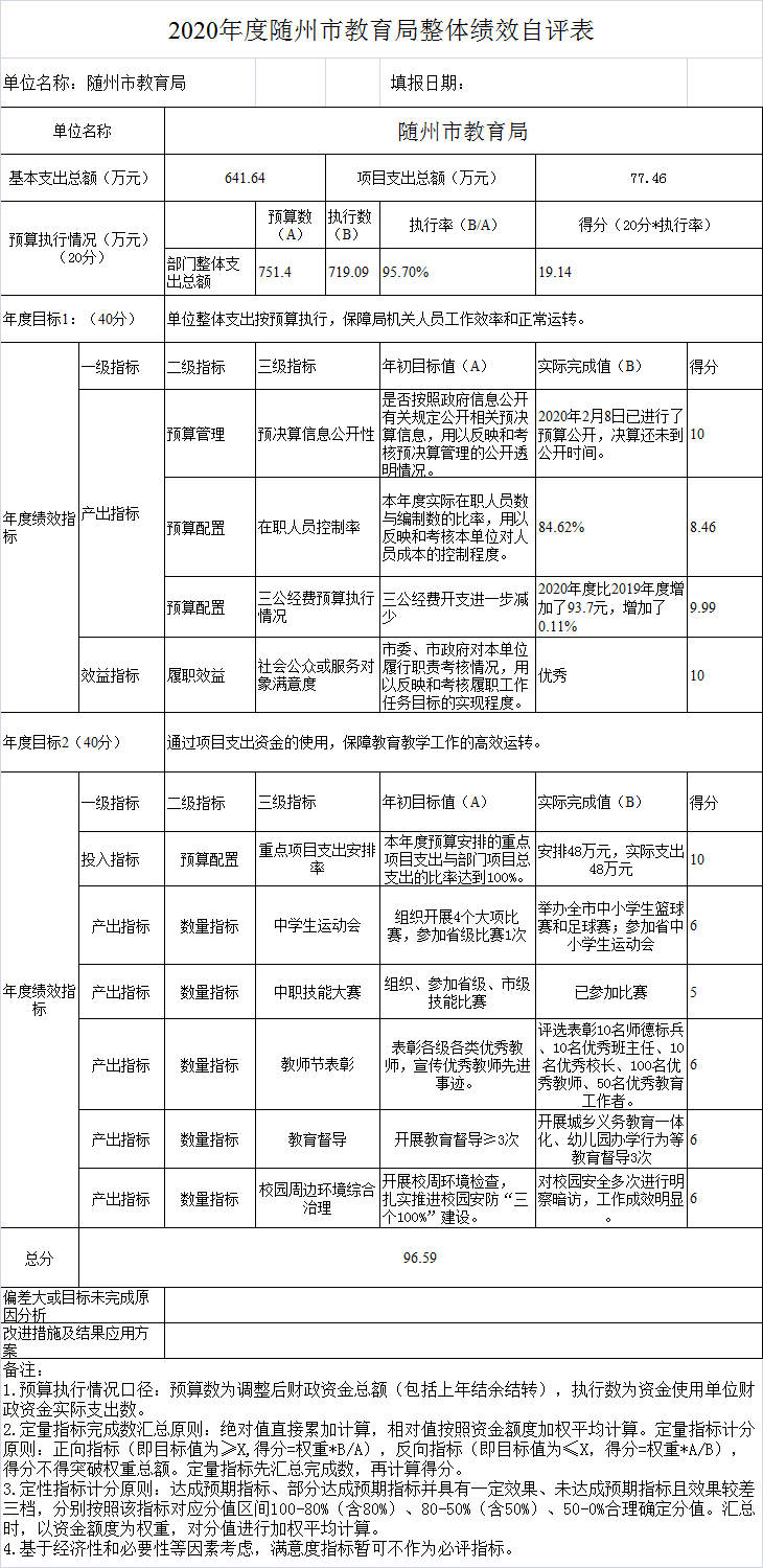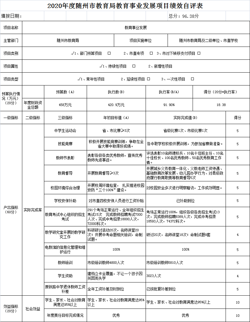 附件:2020年度隨州市教育局部門項(xiàng)目績(jī)效自評(píng)表
