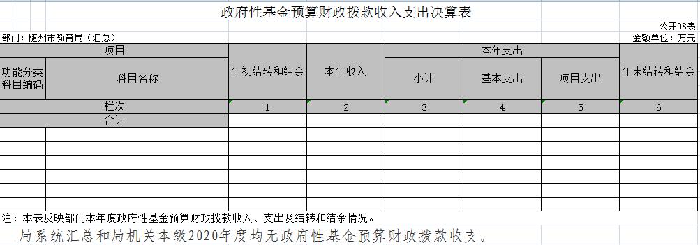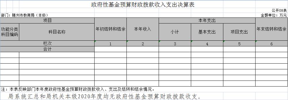 局系統(tǒng)匯總和局機(jī)關(guān)本級(jí)2020年度均無(wú)政府性基金預(yù)算財(cái)政撥款收支。
