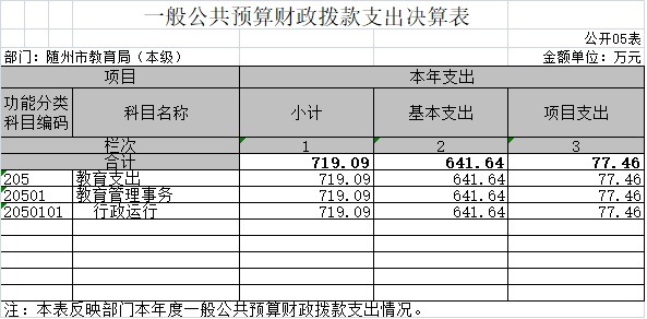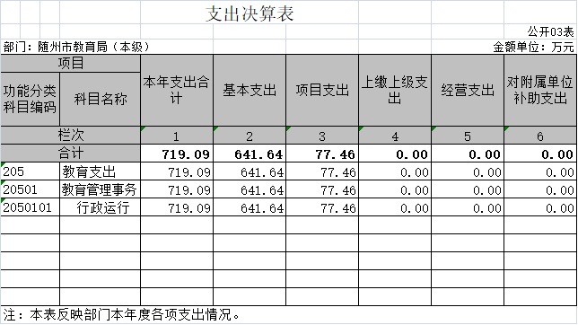 2020年度局系統(tǒng)匯總機(jī)關(guān)運(yùn)行經(jīng)費(fèi)支出50.44萬(wàn)元,與局本級(jí)機(jī)關(guān)運(yùn)行經(jīng)費(fèi)一致,是因?yàn)楸鞠到y(tǒng)行政及參公事業(yè)單位僅隨州市教育局本級(jí)一家。
