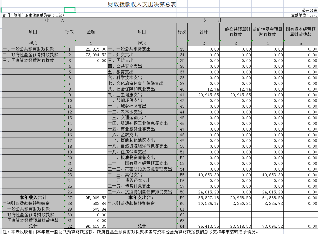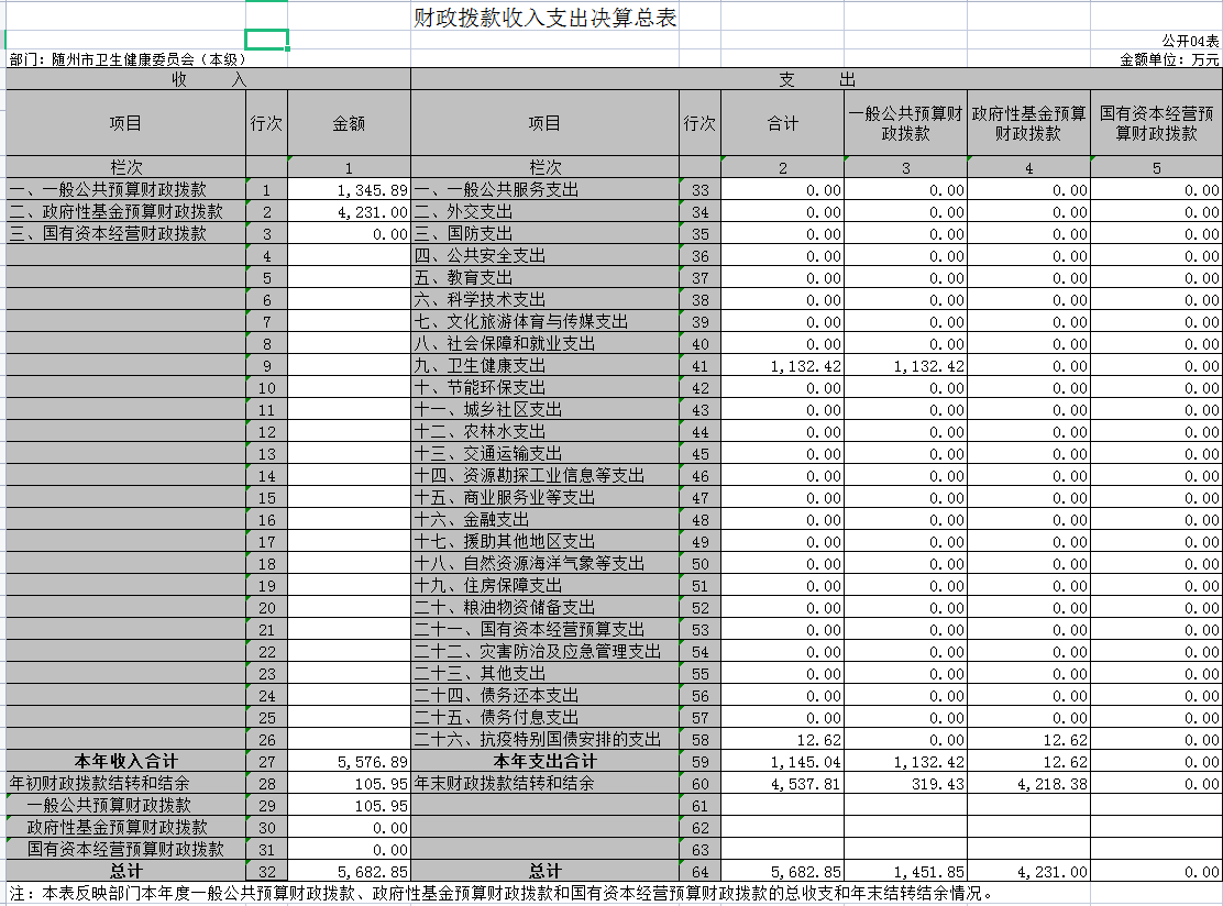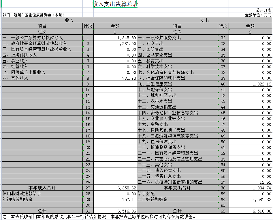 根據《市財政局關于做好2020年度市級部門決算信息公開工作有關事項的通知》(隨財函〔2021〕189號)文件精神,現將隨州市衛生健康委員會2020年度部門決算情況說明如下:
