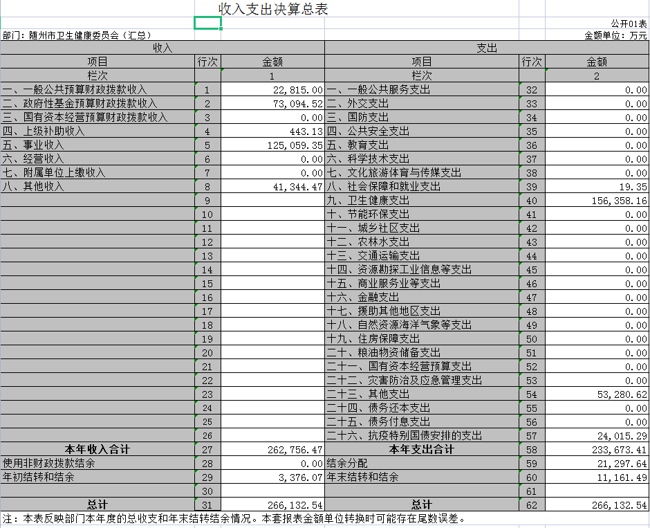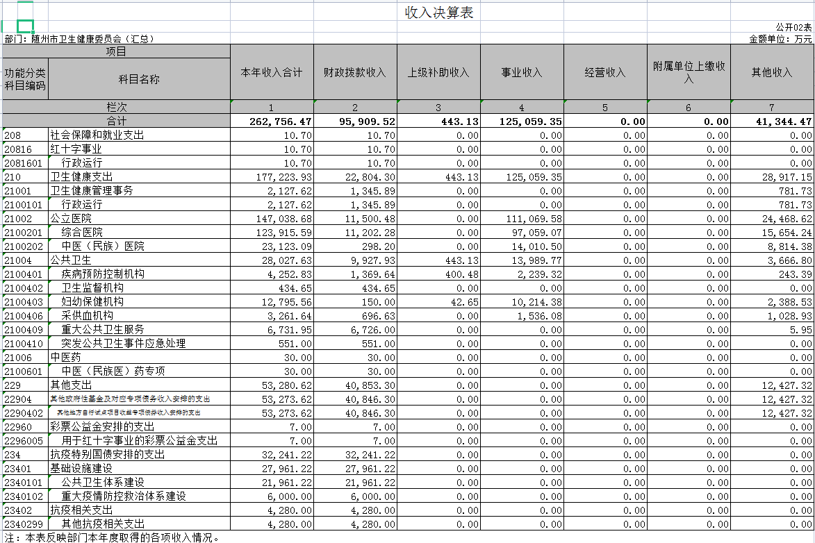 2020年匯總收入決算262756347萬元,與2019年同比增長91.8%(下同),增長原因是全力抗擊新冠肺炎重大疫情,中央和省級調整加大了預算投入。