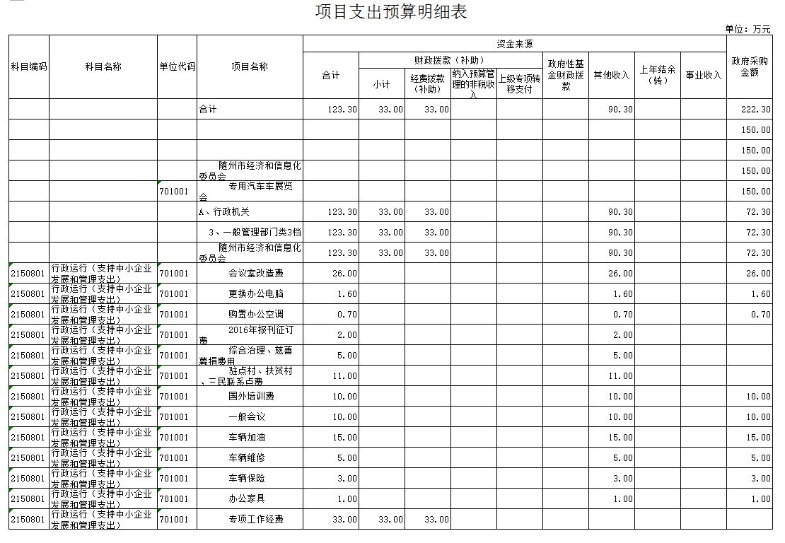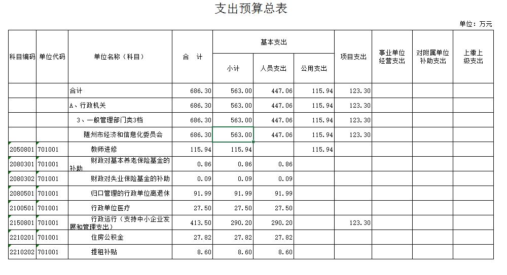 依據《隨州市財政局關于下達2016年市直部門預算的通知》,2016年隨州市經信委預算指標如下:
