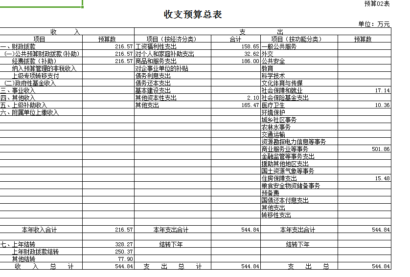 支出預算按照“人員支出按標準,公用經費按定額,項目支出按財力可能”的原則安排,共安排支出預算544.84萬元,其中:基本支出-工資福利支出158.65萬元、對個人和家庭的補助支出32.62萬元、日常公用支出82.16萬元,項目支出271.41萬元。