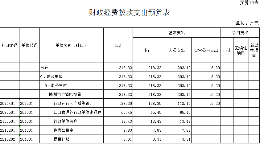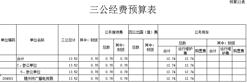 2015年隨州市廣播電視局三公經費財政預算是13.49萬元,2016年隨州市廣播電視局三公經費財政預算是13.52萬元,同比上年增加0.03萬元,增加原因是公務車運行維護費多了0.03萬元。