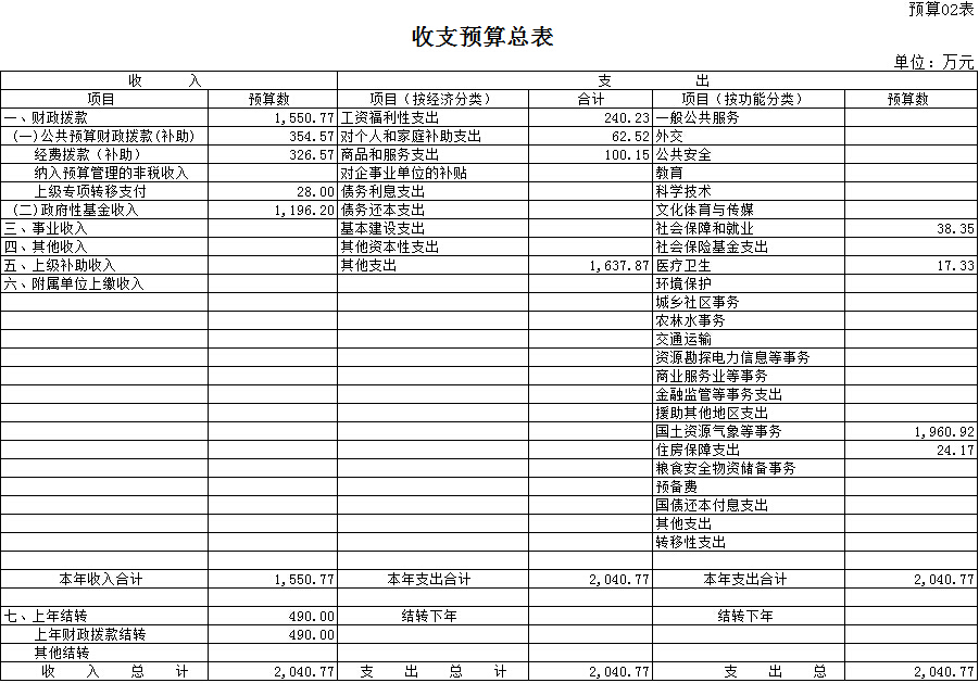 2016年度收支預算總額分別為2040.77萬元,其中財政撥款1550.77萬元(經費撥款326.57萬元、上級專項轉移支付28萬元、政府性基金收入1196.20萬元),上年度財政撥款結轉490萬元。工資福利性支出240.23萬元,對個人和家庭補助支出62.52萬元,商品和服務支出100.15萬元,其它支出1637.87萬元。