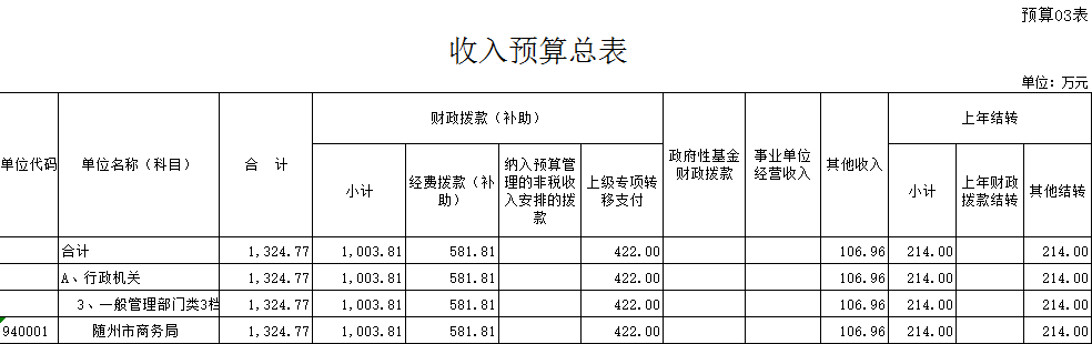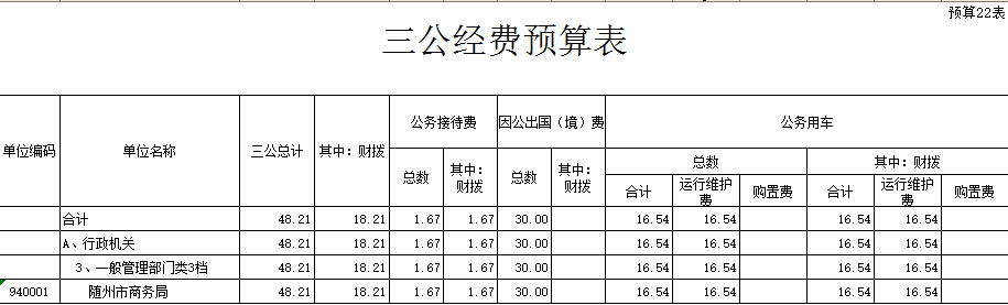 (二) 部門預(yù)算單位構(gòu)成。隨州市商務(wù)局由局機關(guān)行政單位1個組成。