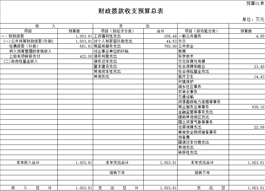 2016年部門預(yù)算總收入1003.81萬元。其中:經(jīng)費撥款581.81萬元,上級專項轉(zhuǎn)移支付422萬元。