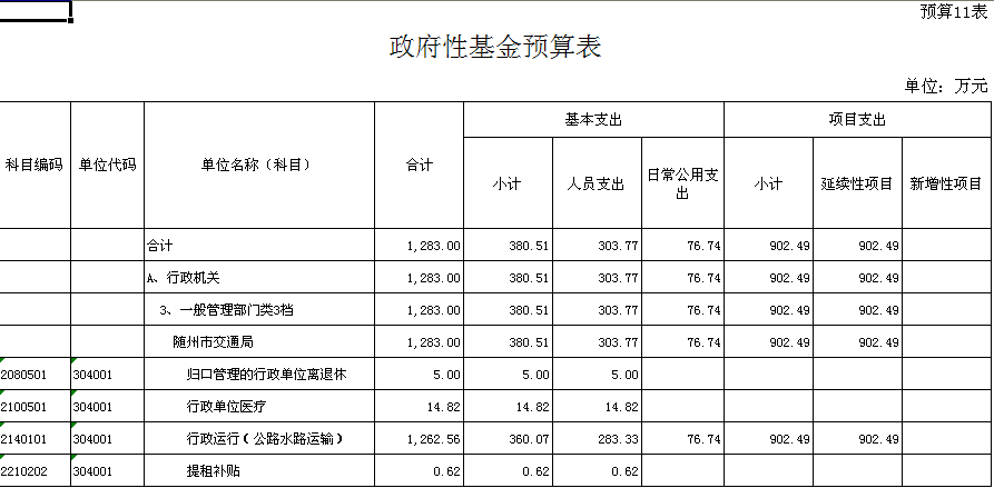 交通運輸局設8個內設機構:辦公室、政工人事科、運輸安全科、綜合計劃科、縣鄉道管理科、基建科、財務科、審計科機關行政編制為28名。另核定機關“以錢養事”崗位3個(含曾都分局1個)。