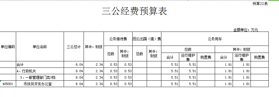 2016年市扶貧辦“三公”經費總計6.04萬元,其中公務接待費0.53萬元,因公出國(境)費0元,公務用車費5.51萬元。經費預算與上年持平,無增減變化。