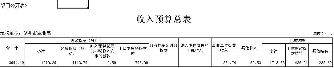 ??2017年隨州市農(nóng)業(yè)局(匯總)收入預(yù)算總額3944.19萬元,其中隨州市農(nóng)業(yè)局(本級(jí))1482.35萬元、隨州市畜牧獸醫(yī)局477.34萬元、隨州市經(jīng)管局151.21萬元、隨州市農(nóng)機(jī)局160.34、隨州市水產(chǎn)局93.43萬元、隨州市蔬菜辦224.39萬元、隨州市農(nóng)業(yè)行政執(zhí)法支隊(duì)315.50萬元、隨州市農(nóng)業(yè)廣播學(xué)校1039.63萬元。