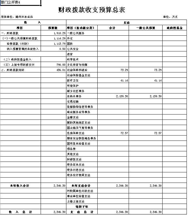 ??四、財(cái)政撥款收支總表
