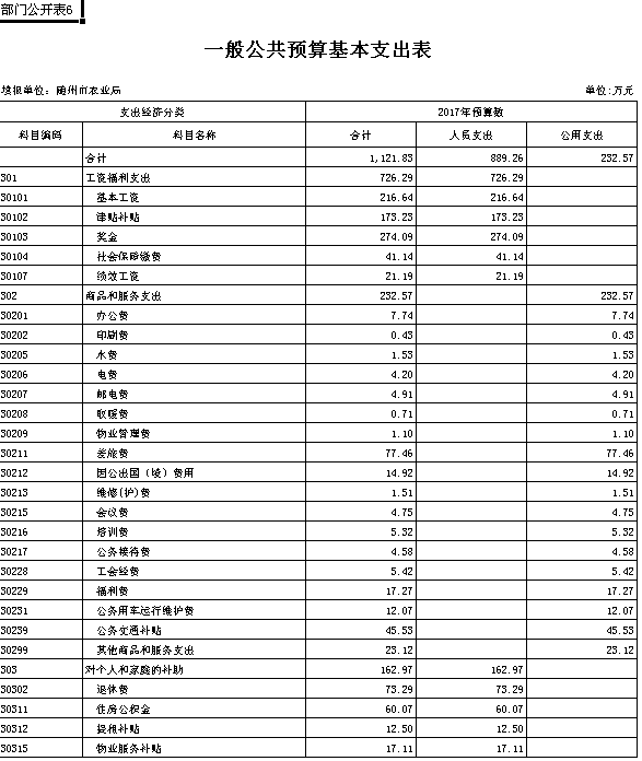 ??第三部分 隨州市農(nóng)業(yè)局2017年部門預(yù)算表(匯總)