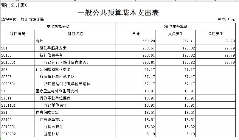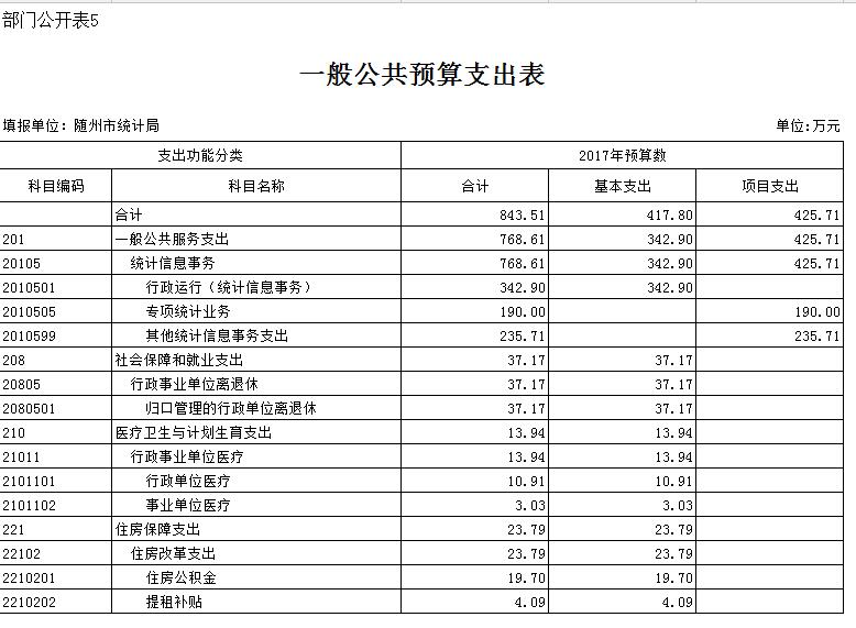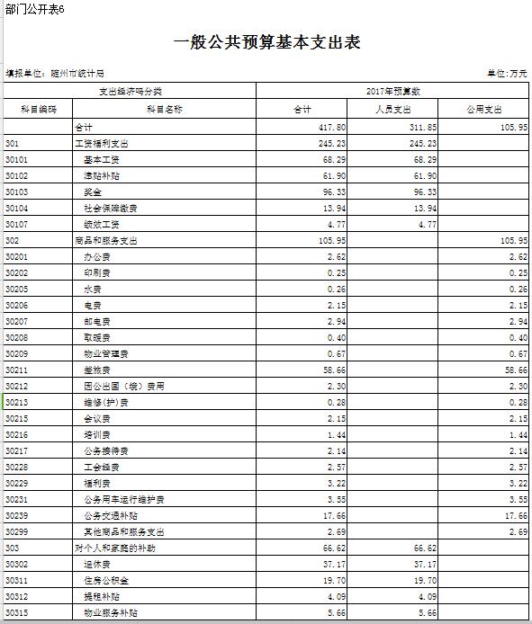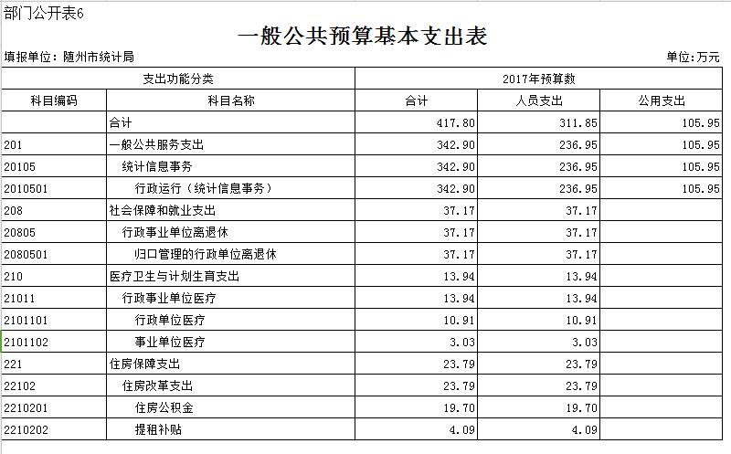 第三部分 隨州市統(tǒng)計(jì)局2017年部門預(yù)算表