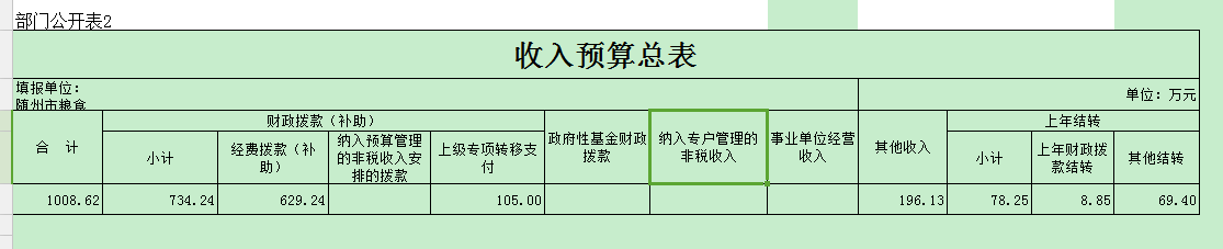 (一)預算2017年收入總額1008.62萬元。其中:糧食局本級收入總額864.29萬元,比2016年增加201.68萬元,主要是上級專項轉移支付增加和人員經費、上年結轉結余有所增加,上年結轉結余大部分是其他應付款(應交養老保險和職業年金)。