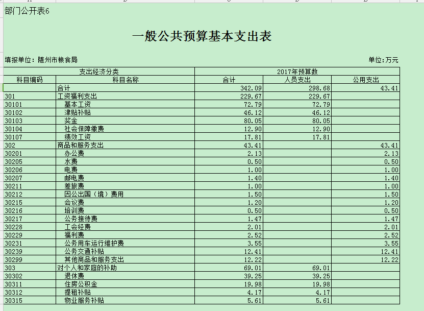 第二部分 隨州市糧食局2017年部門預算情況說明