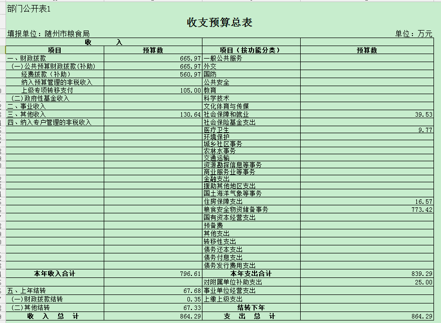 2、項目支出516.38萬元。其中:①其他應付款(應交養老保險金和職業年金)32.16萬元;②物業管理費13萬元;③糧食局辦公大樓維修及更新監控設施12萬元;④對市軍糧供應中心補助5萬元;⑤對糧食質量監測站補助20萬元;⑥扶貧資金13萬元;⑦糧油信息統計4.22萬元;⑧放心糧油市場體系管理4萬元;⑨糧庫信息化建設25萬元;⑩隨州市市級儲備糧388萬元。