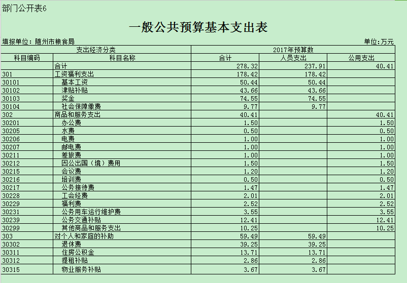 (二)預算2017年支出總額1008.62萬元。其中市糧食局本級支出總額864.29萬元。
