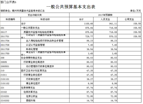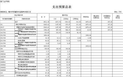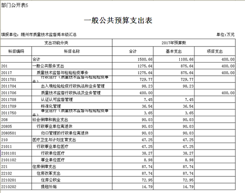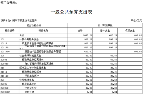隨州市質(zhì)量技術監(jiān)督局2017年部門預算