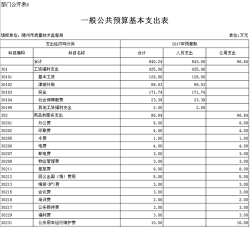 第三部分 隨州市質(zhì)量技術監(jiān)督局2017年部門預算表