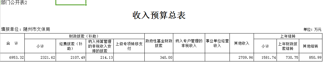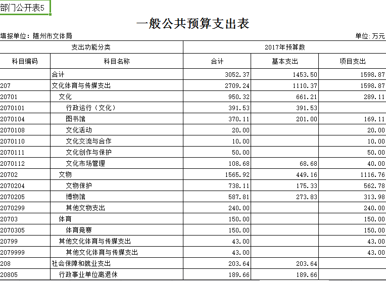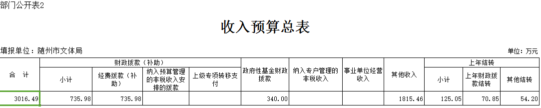 2017年預(yù)算中,隨州市文體系統(tǒng)財政撥款預(yù)算支出2107.49萬元(含四個二級單位:博物館、圖書館、文化市場執(zhí)法支隊、擂鼓墩文管處,其中局本級735.98萬元)。