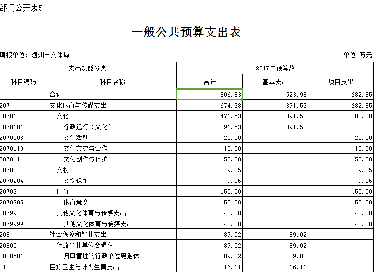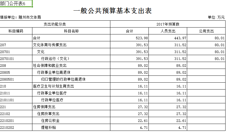 二、隨州市文化體育新聞出版廣電局2017年部門預(yù)算情況說明: