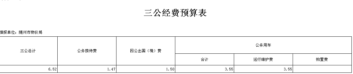 2017年隨州市物價(jià)局“三公”經(jīng)費(fèi)年初預(yù)算財(cái)政資金安排6.52萬元。其中: