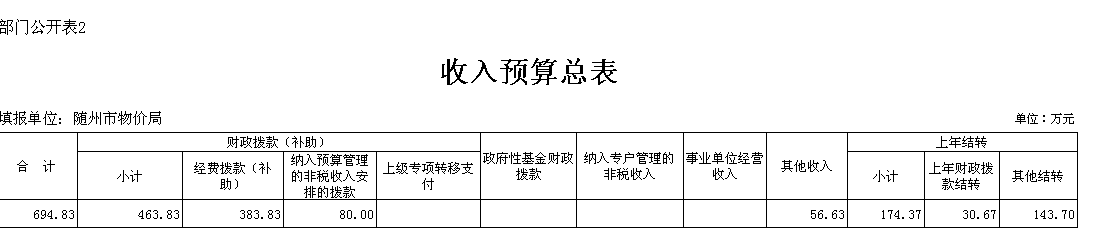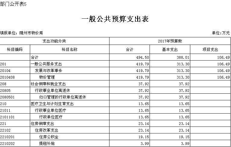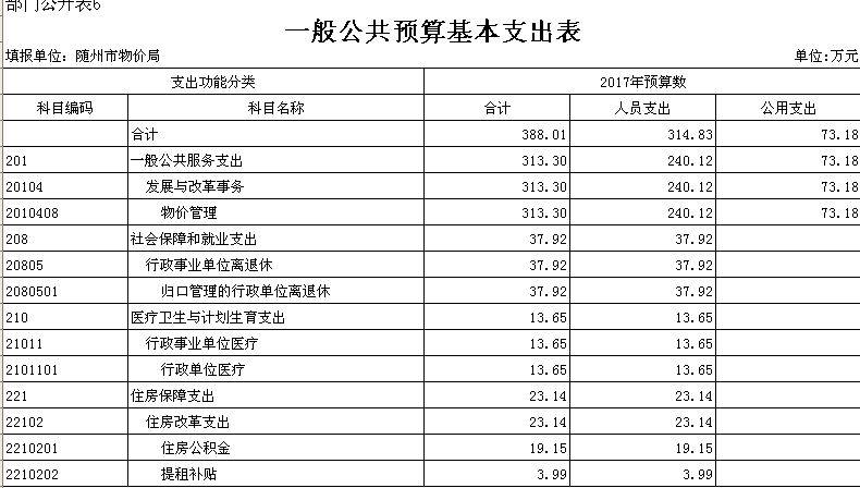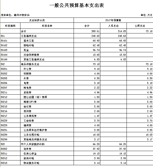 第三部分隨州市物價(jià)局2017年部門預(yù)算表
