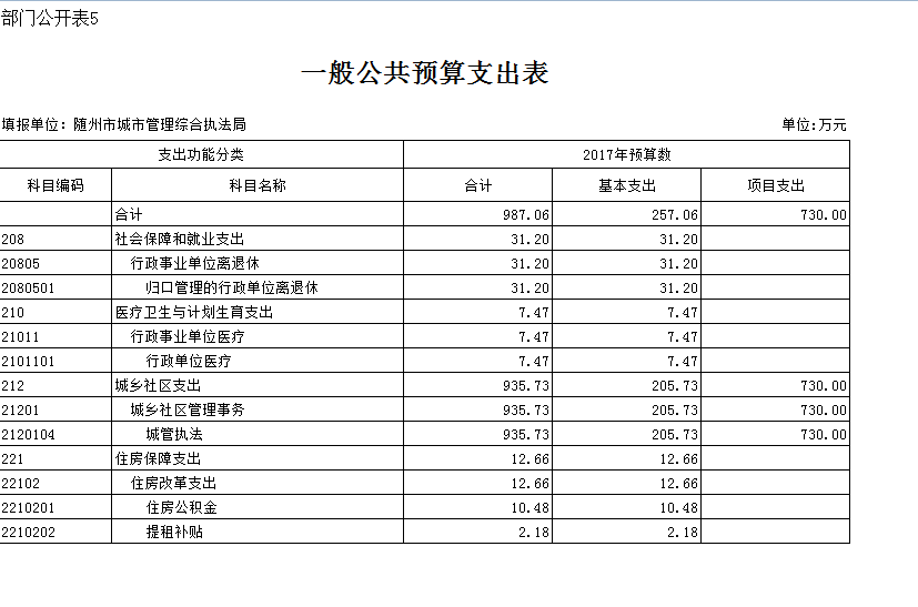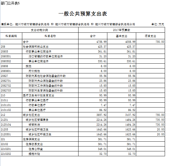 市城管執(zhí)法局2017年預(yù)算說明