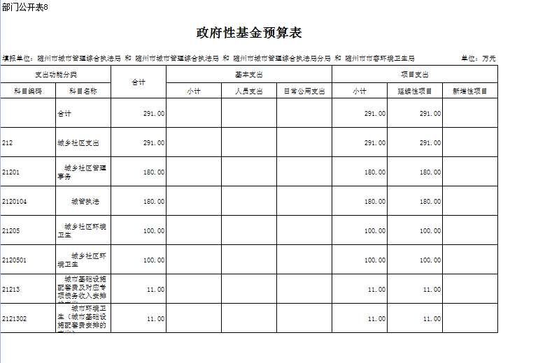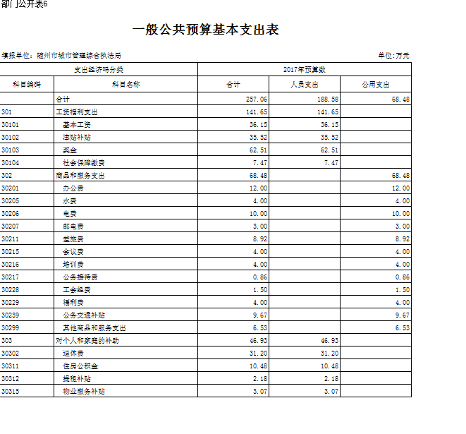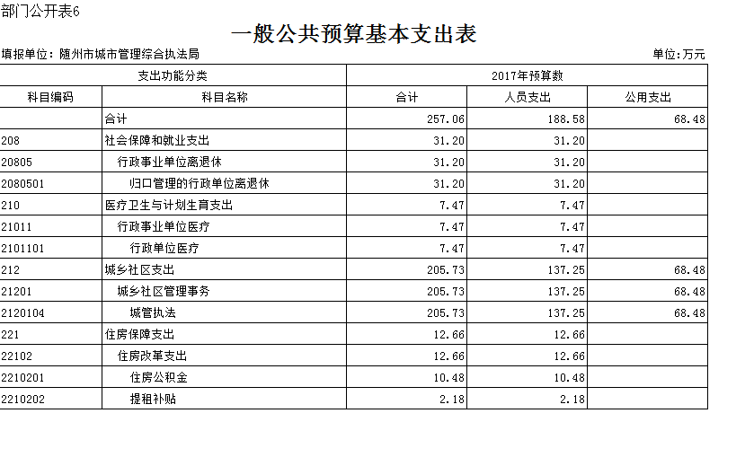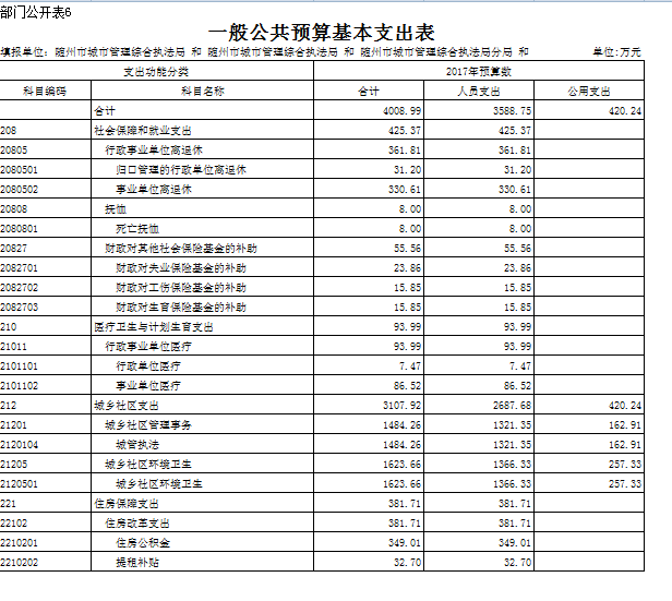 2017年本級財(cái)政支出2279.54萬元,其中基本支出265.06,主要用于人員工資、公用經(jīng)費(fèi)和社會保障繳費(fèi)的支出,較上年增加了10%,是由于工資及社會保障繳費(fèi)大幅上調(diào);對附屬單位補(bǔ)助支出827.25萬元,彌補(bǔ)下級單位工資不足,項(xiàng)目支出1187.23萬元,主要用于數(shù)字城管建設(shè)及城區(qū)旱廁改造等延續(xù)性工程,項(xiàng)目支出占支出總額的52%,前期工程已經(jīng)完成,等待驗(yàn)收付款。