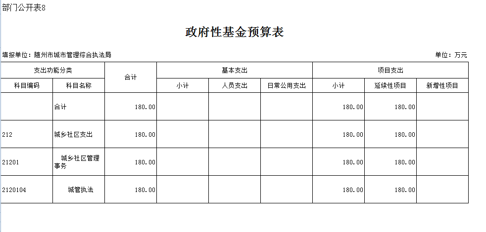 本年政府性基金180萬元,與上年持平,主要是延續(xù)性項(xiàng)目。