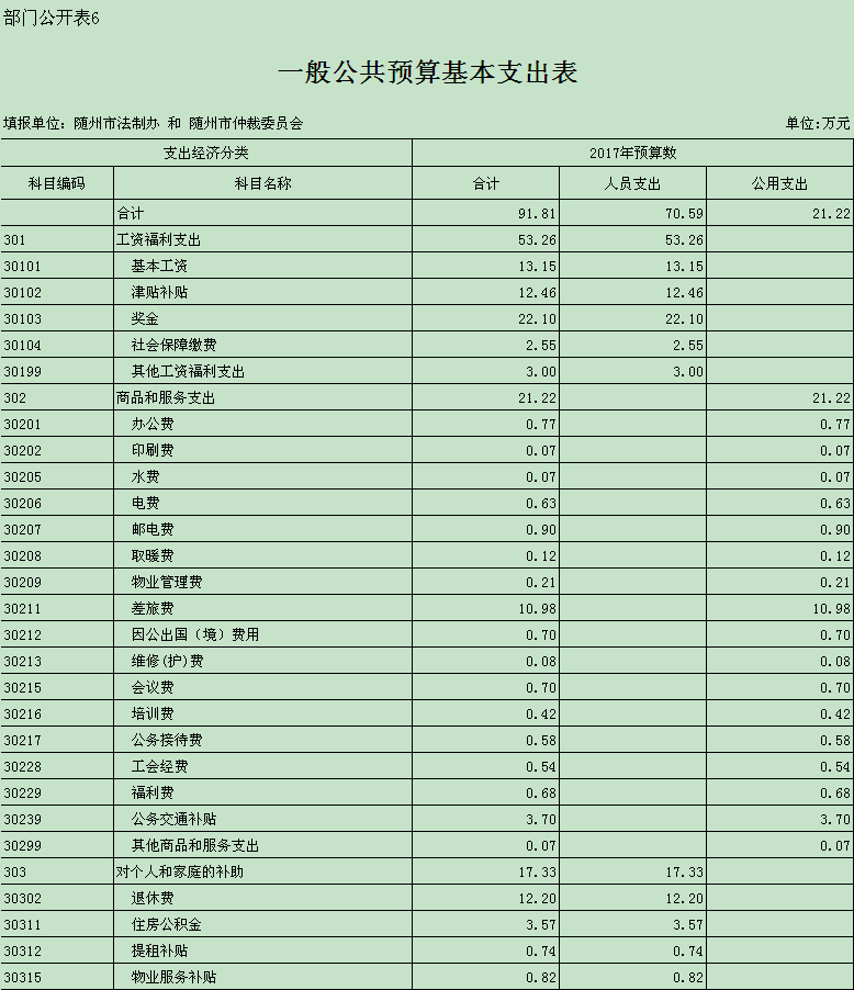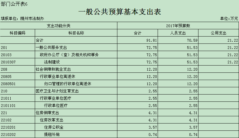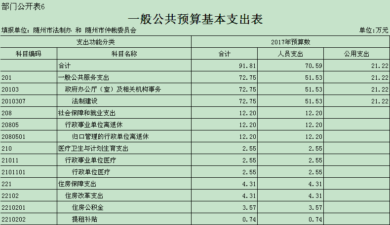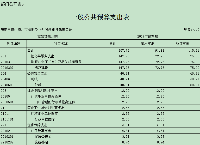 ??第三部分隨州市人民政府法制辦公室2017年部門預算表