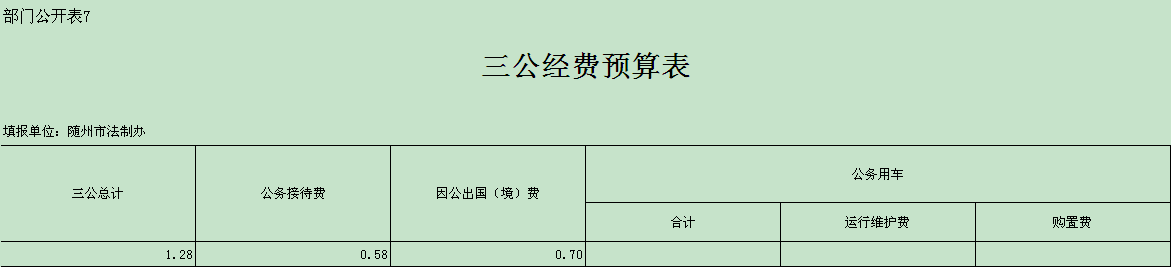 ??2017年度,隨州市人民政府法制辦公室三公經費預算1.28萬元(辦本級1.28萬元,其中公務接待費0.58萬元、因公出國經費0.7萬元、公務用車預算0萬元),比去年預算減少10.5萬元,減少89%。減少原因為單位公務用車被核減。